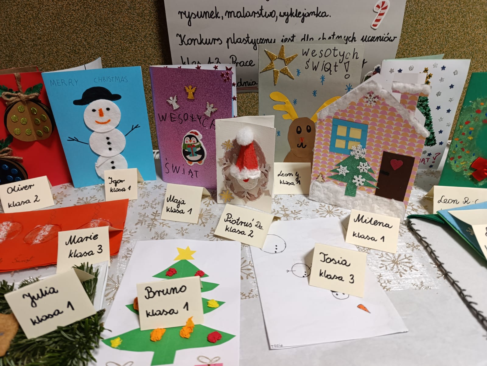 W styczniu odbyło się rozstrzygnięcie szkolnego konkursu plastycznego na ,,Najpiękniejszą kartkę Bożonarodzeniową''. Uczniowie wykazali się dużym zaangażowaniem, kreatywnością w wykonywaniu prac. Każda kartka zawierała również własnoręcznie napisane życzenia świąteczne. Laureatami konkursu zostali: I miejsce – Liliana Giza (klasa I) II miejsce –