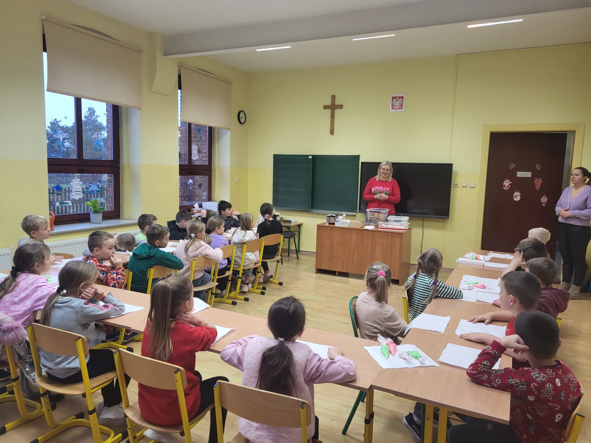 W ostatnim dniu przed świętami odbyło się piękne przedstawienie o narodzinach Jezusa, złym królu Herodzie, odwiedzinach aniołków i pastuszków w betlejemskiej szopce, które wprowadziło nas w świąteczny nastrój. Po wspaniałych jasełkach odbyły się już tradycyjne klasowe wigilijki, z życzeniami i
