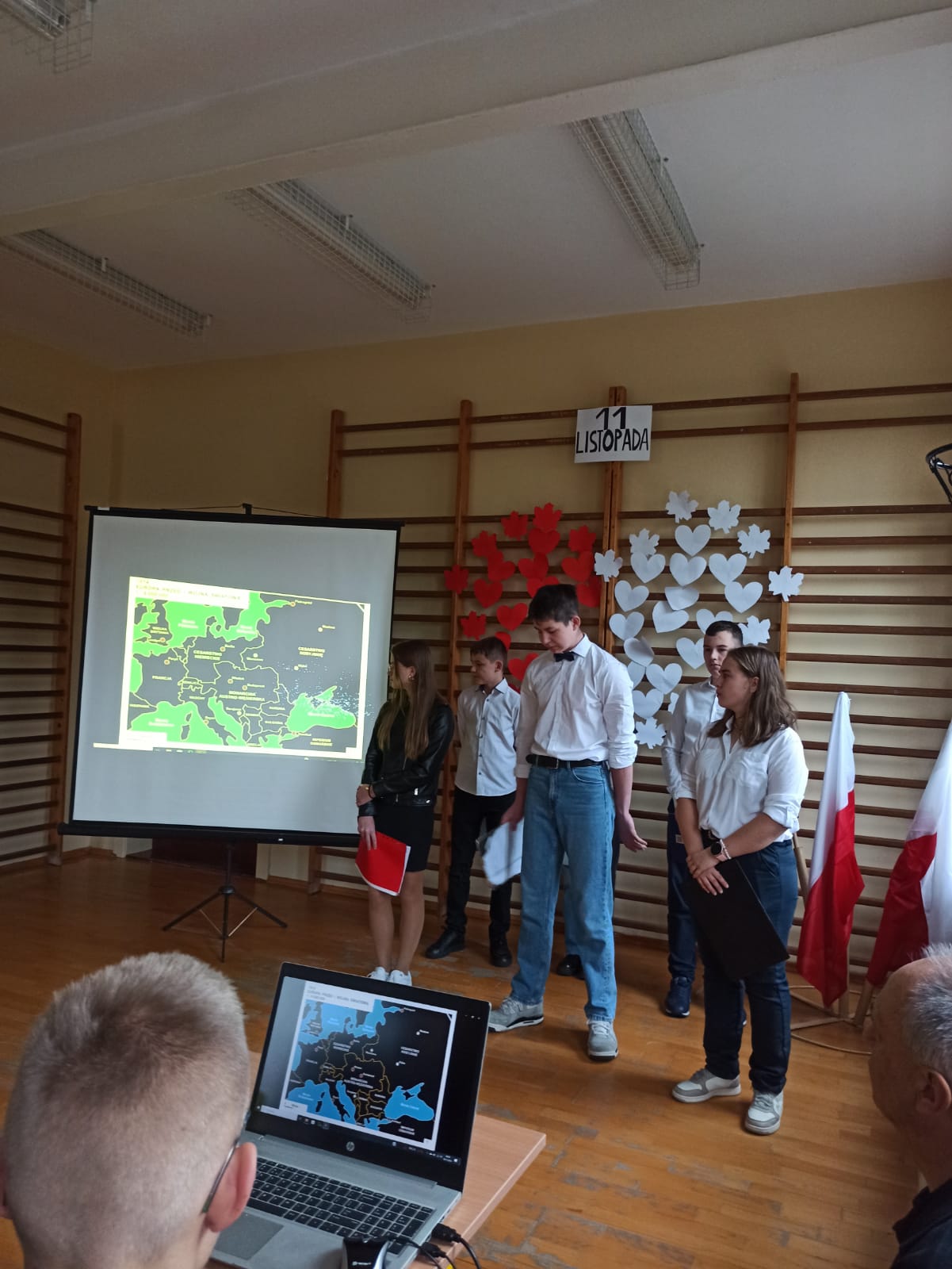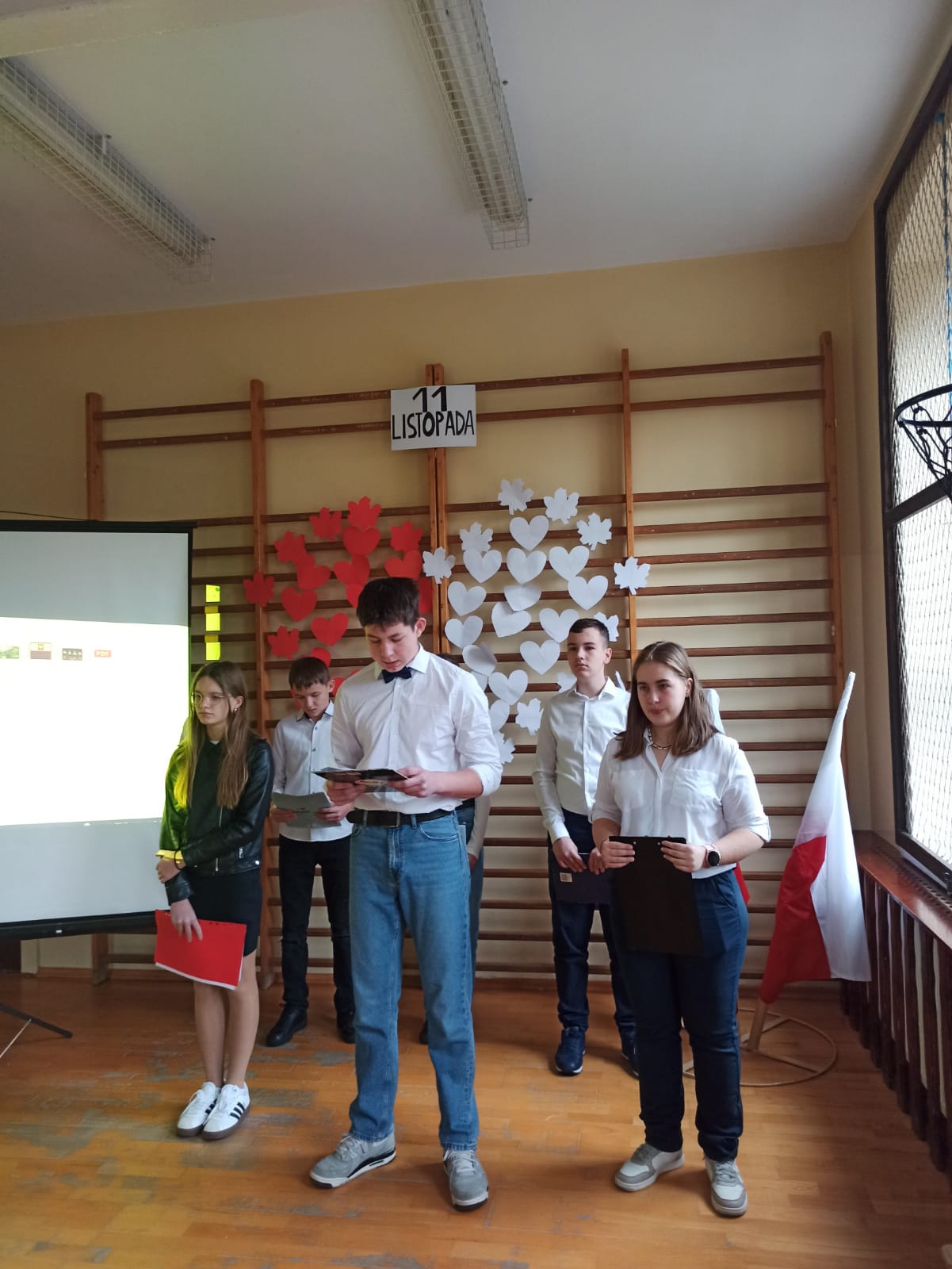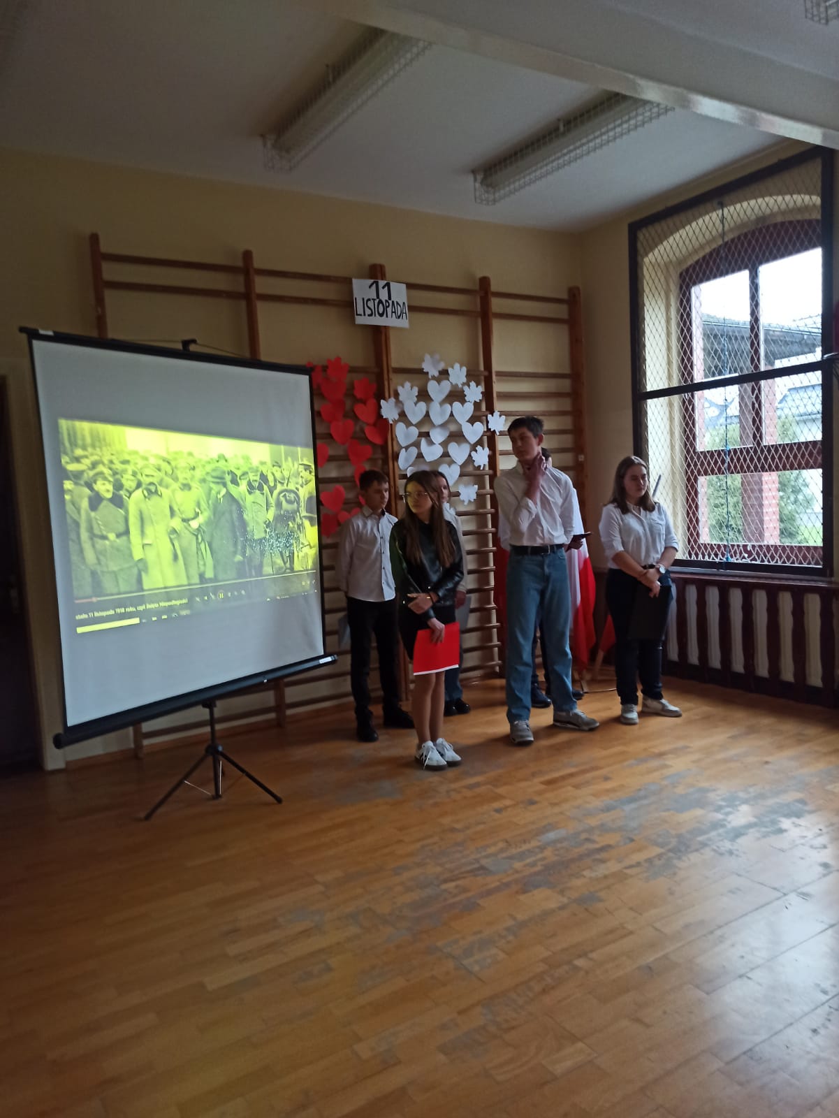 Z okazji 11 listopada odbyła się uroczysta akademia, w trakcie której uczciliśmy Narodowe Święto Niepodległości. Był to czas refleksji nad historią Polski, nad trudną drogą, którą przeszli nasi przodkowie, walcząc o wolność naszego kraju. Uczniowie klasy 7 i 8 przygotowali część artystyczną. Był uroczysty hymn, wiersze oraz prezentacja multimedialna.