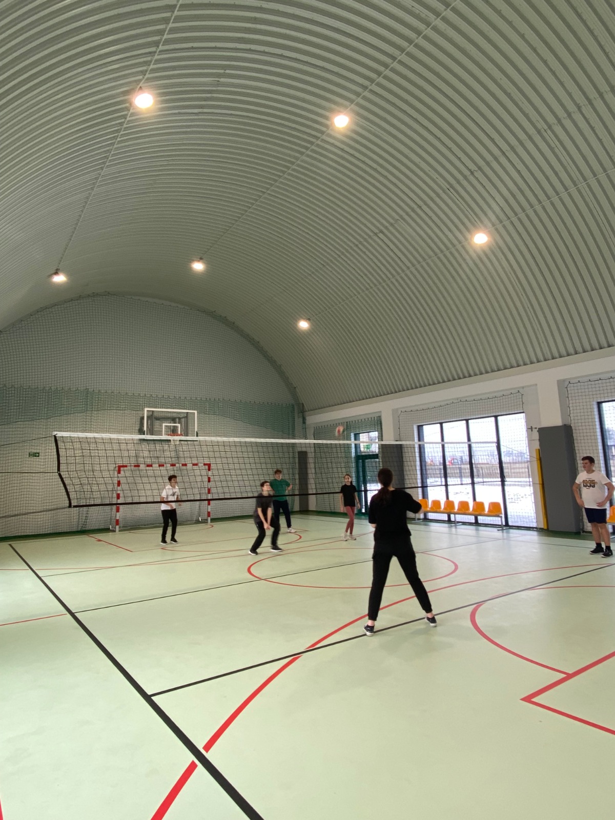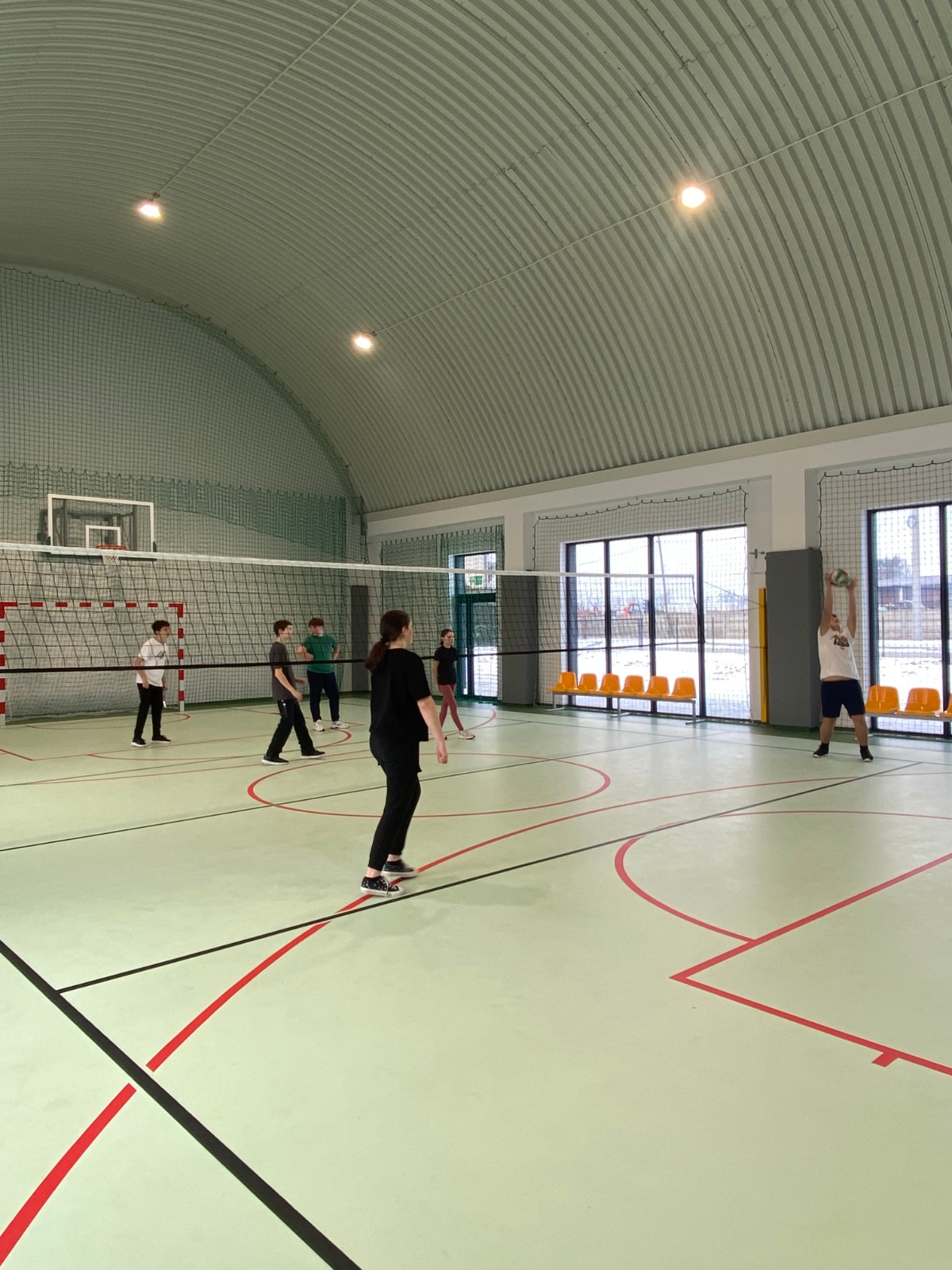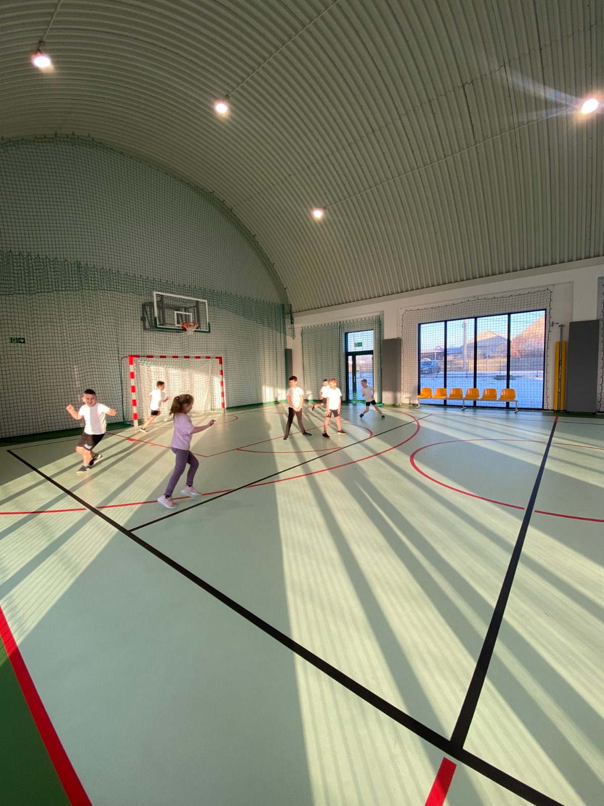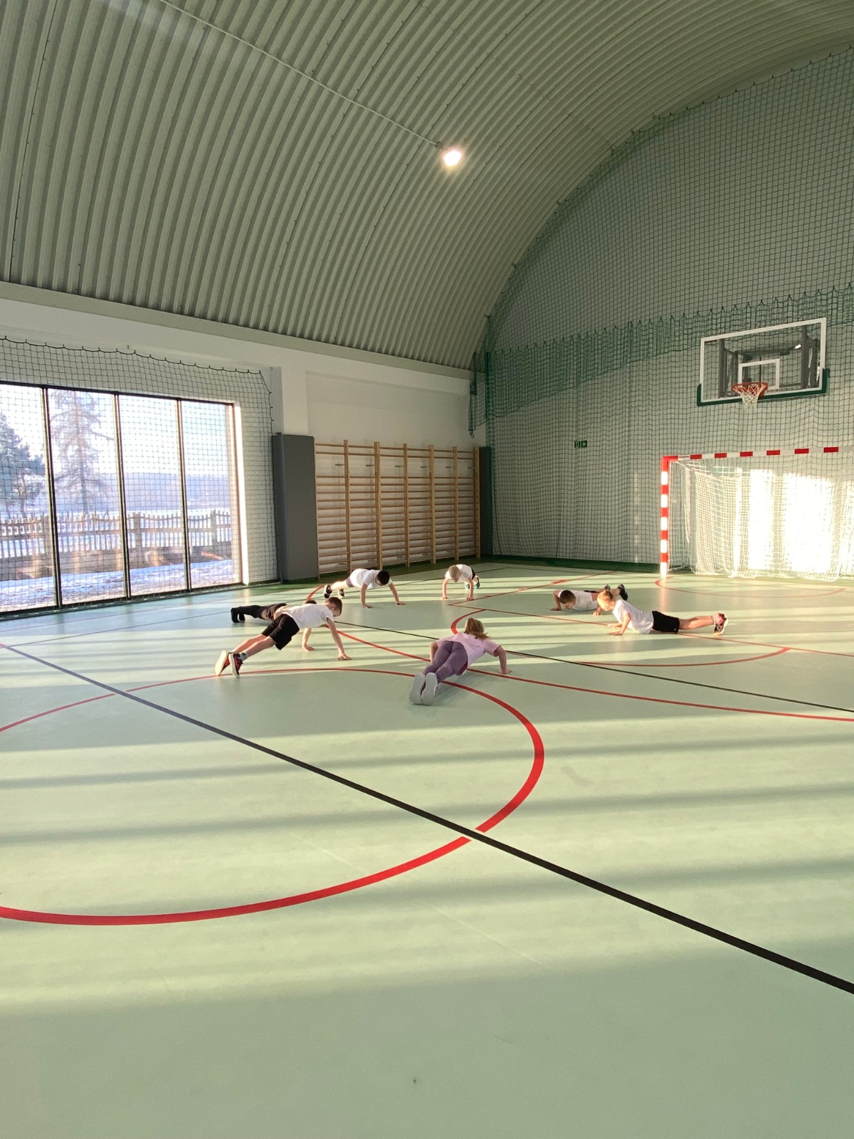 W dniu 9.01.2026r. odbyły się pierwsze zajęcia na nowo powstałej hali sportowej. Uczniowie z zachwytem oglądali nowy obiekt, sprawdzając, czy podłoga się ślizga i czy piłka naprawdę lepiej się odbija. Podczas zajęć wykonywali różne ćwiczenia oraz gry zespołowe, testując wytrzymałość hali i własną kondycję. Zajęcia minęły szybko i wesoło. Nowa hala sportowa bardzo spodobała się uczniom i sprawiła, że nawet najmniej chętni do ćwiczeń ruszyli się z miejsc. 😄