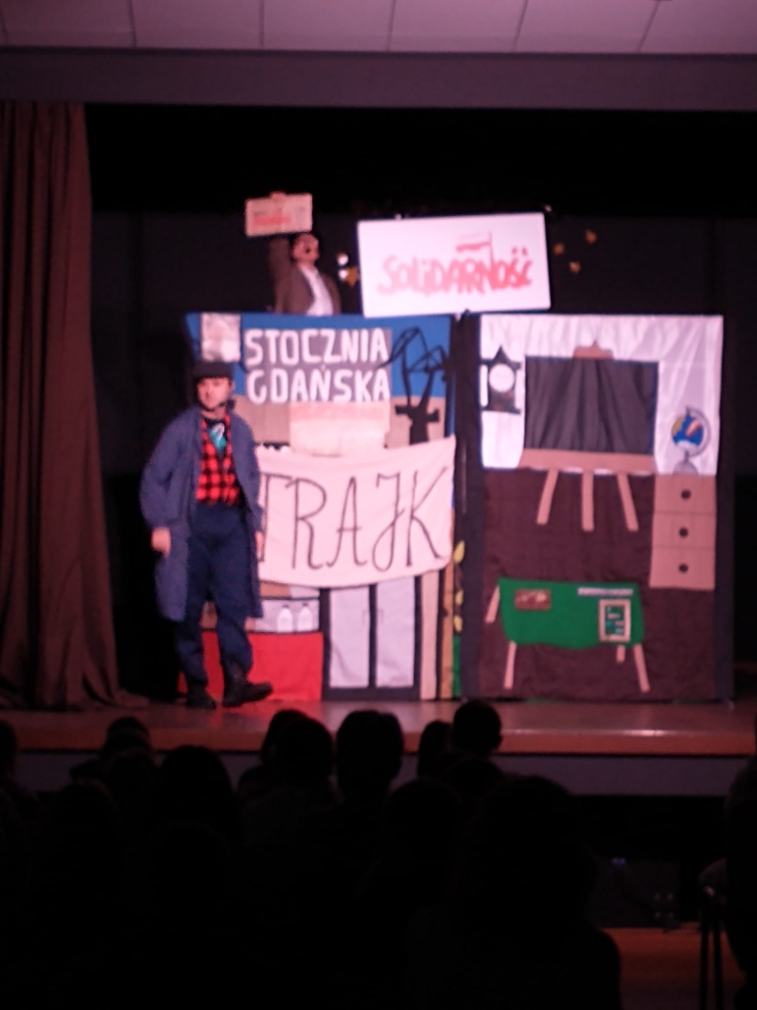 10.10 uczniowie klas 4-6 wzięli udział w spektaklu historycznym ( w ramach projektu „ Przystanek Historia” – „ Tak się żyło w PRL-u w prószkowskim GOKU wraz z 10 latkiem przenieśliśmy się w lata 80 i poznaliśmy codzienne szare życie: puste półki, kartki na żywność, urok kolejki za nie