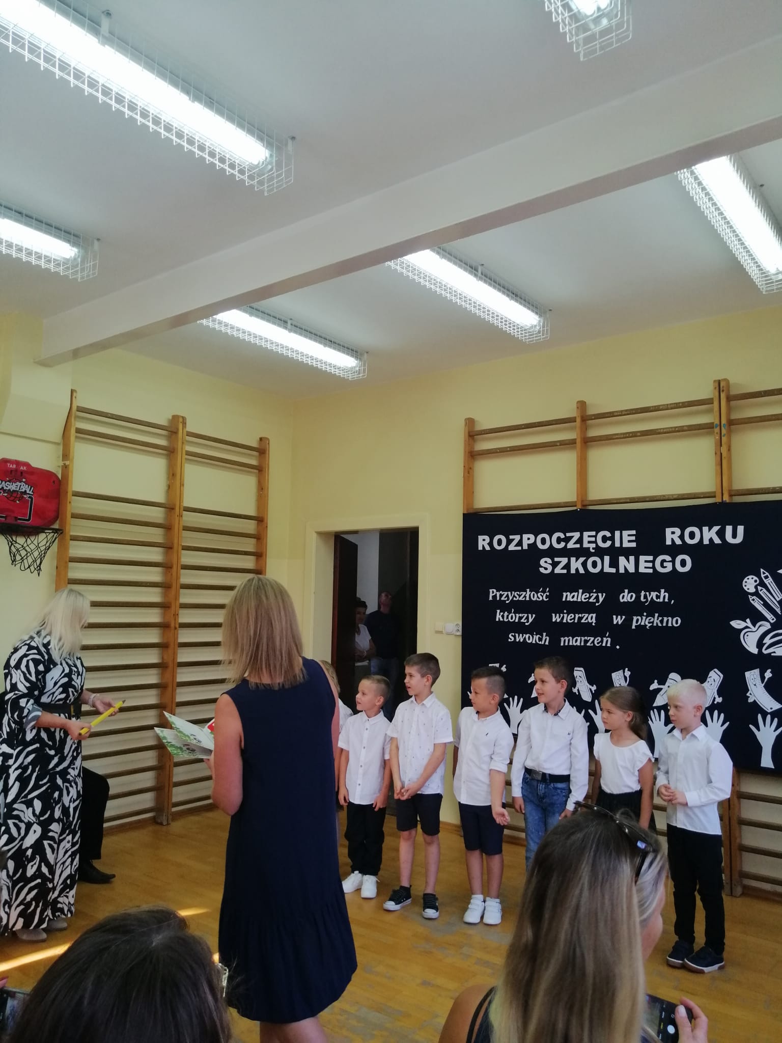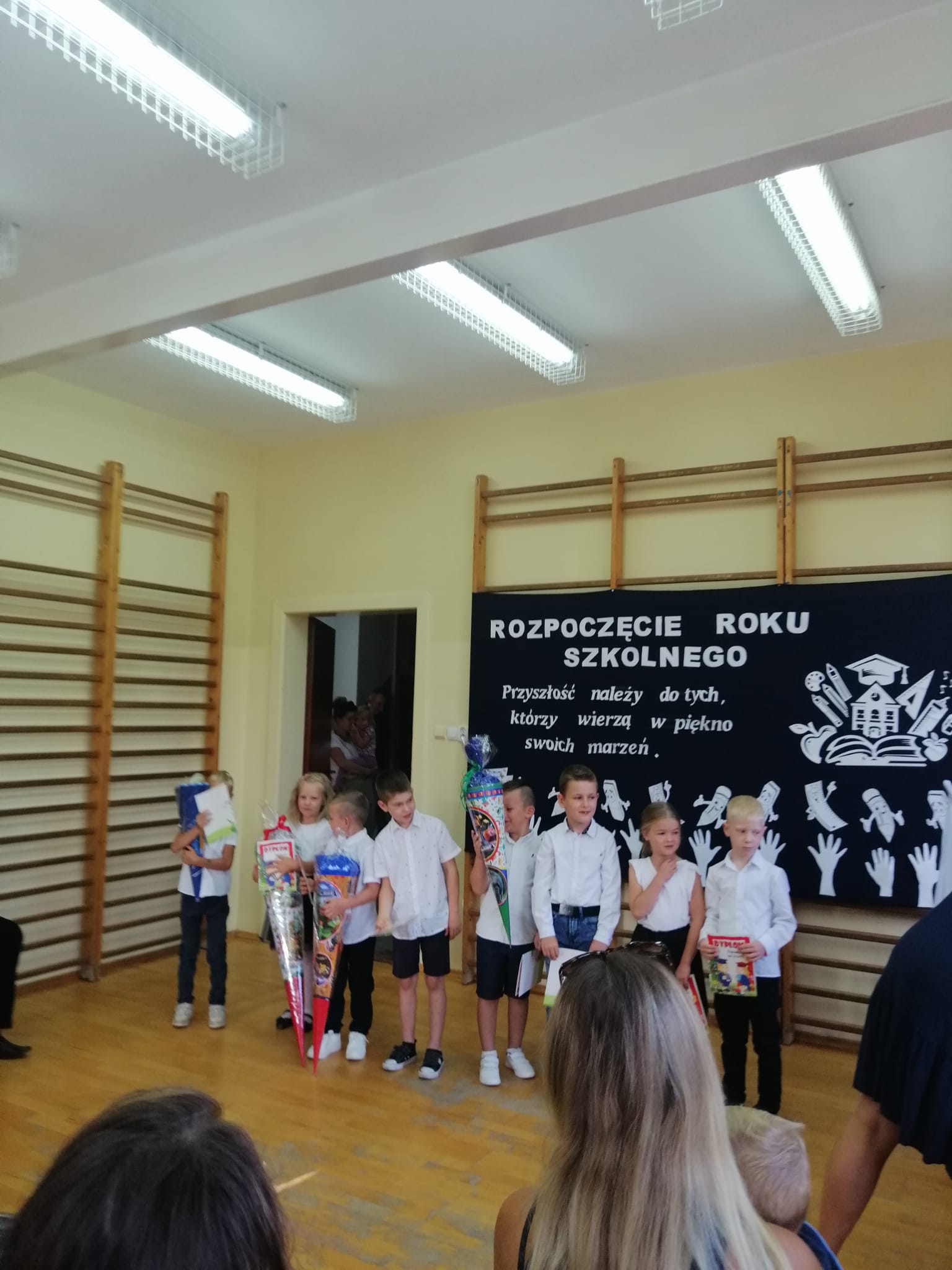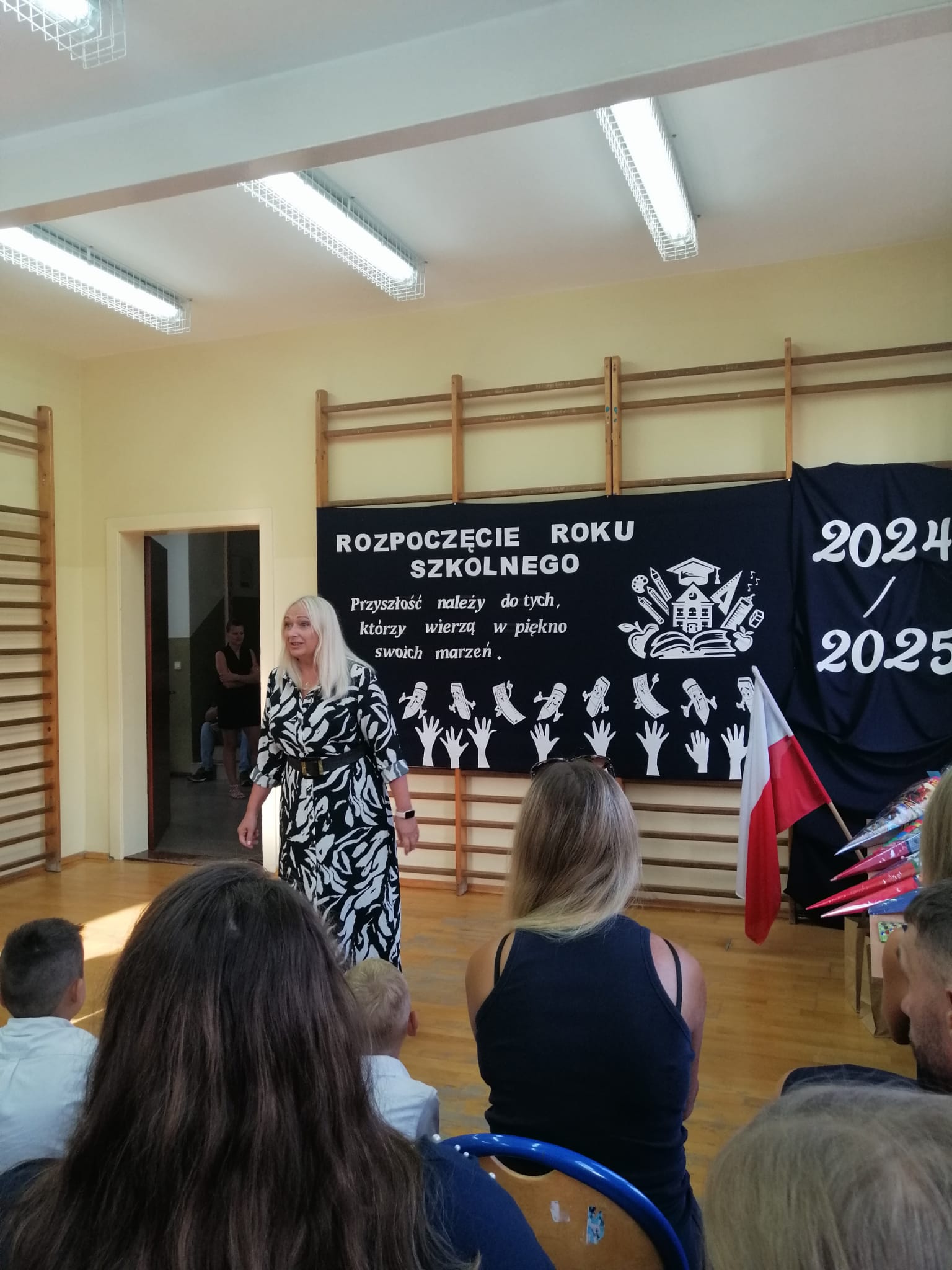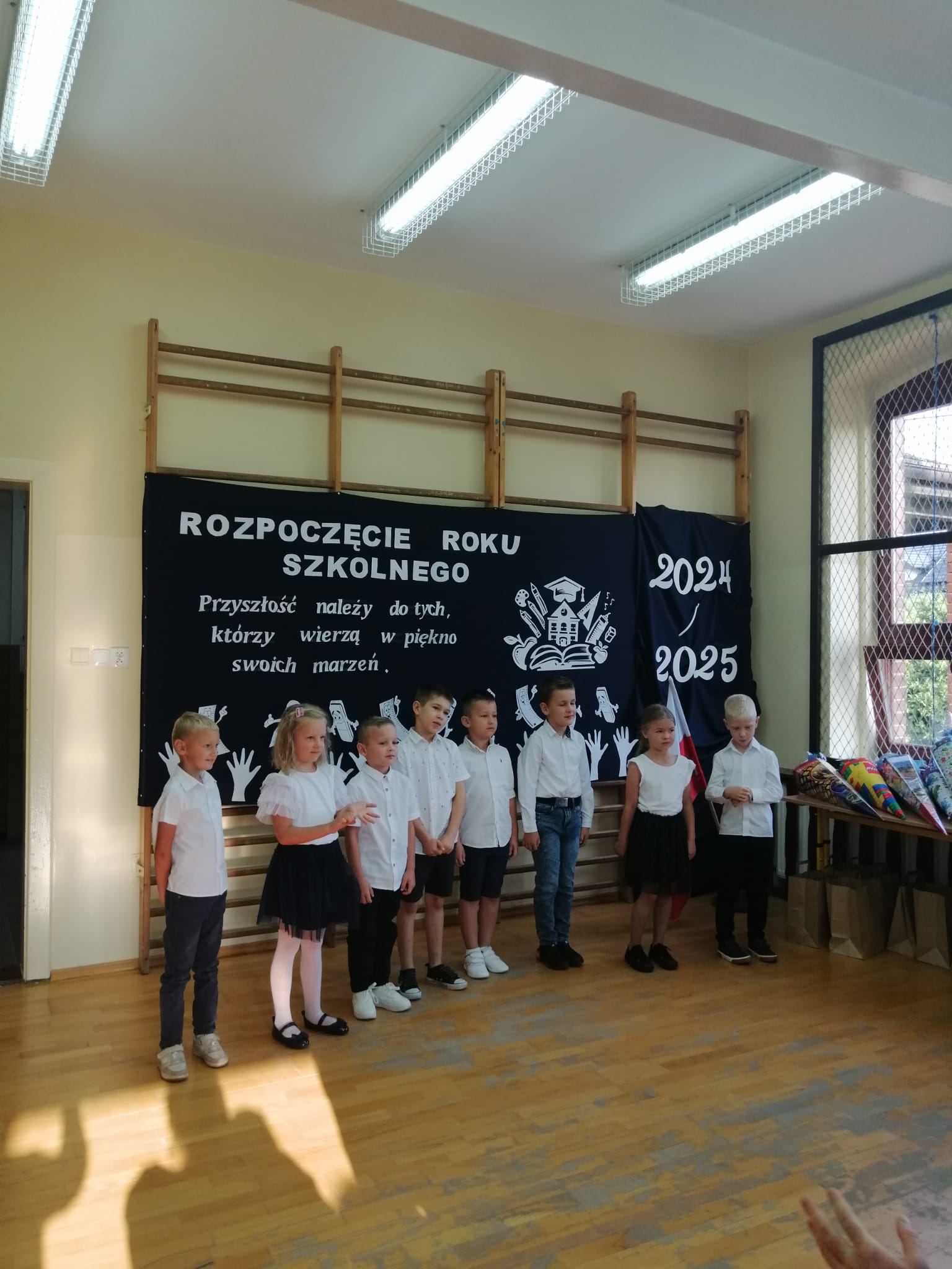 2 września, z radością powitaliśmy nowy rok szkolny 2024/2025! Uroczystość rozpoczęła się  w sali gimnastycznej naszej szkoły, gdzie zgromadzili się uczniowie, nauczyciele oraz rodzice i zaproszeni goście. Pani Dyrektor serdecznie przywitała wszystkich a szczególnie uczniów klasy pierwszej, którzy po raz pierwszy zawitali w murach naszej szkoły.  Uczniowie klasy pierwszej zostali poddani sprawdzianowi gotowości pierwszoklasisty, który zdali znakomicie i zostali  uroczyście pasowani  na uczniów naszej szkoły. Na zakończenie Pani Dyrektor wspomniała  jak ważne jest zaangażowanie w naukę oraz życie szkolnej społeczności.