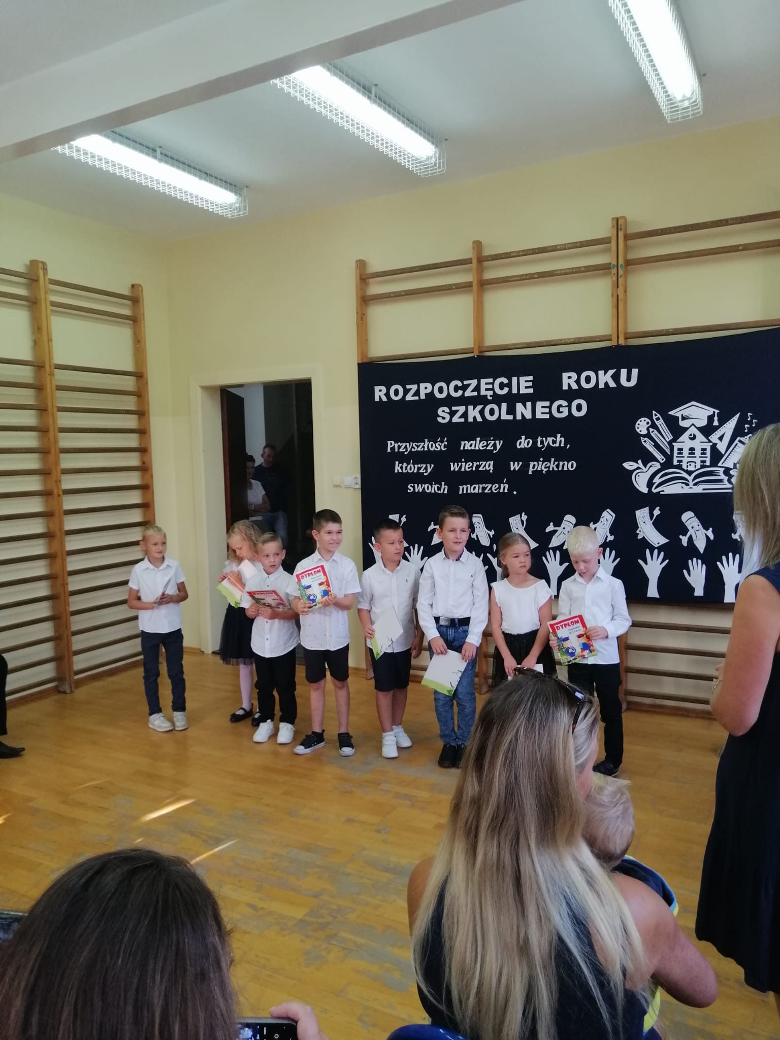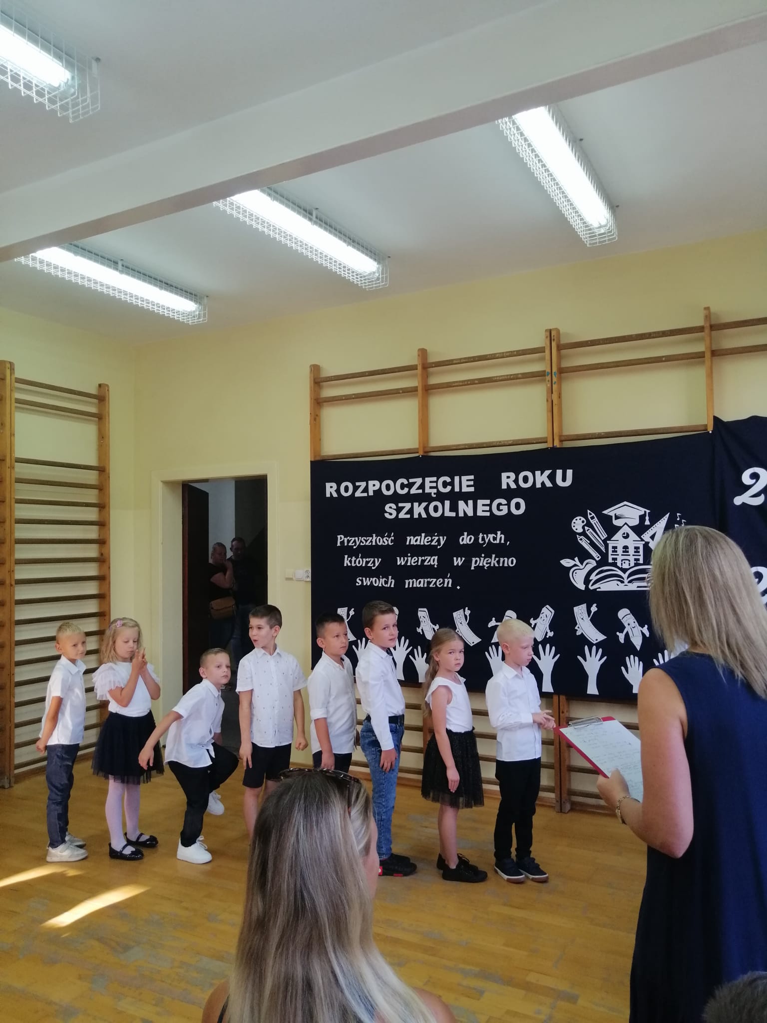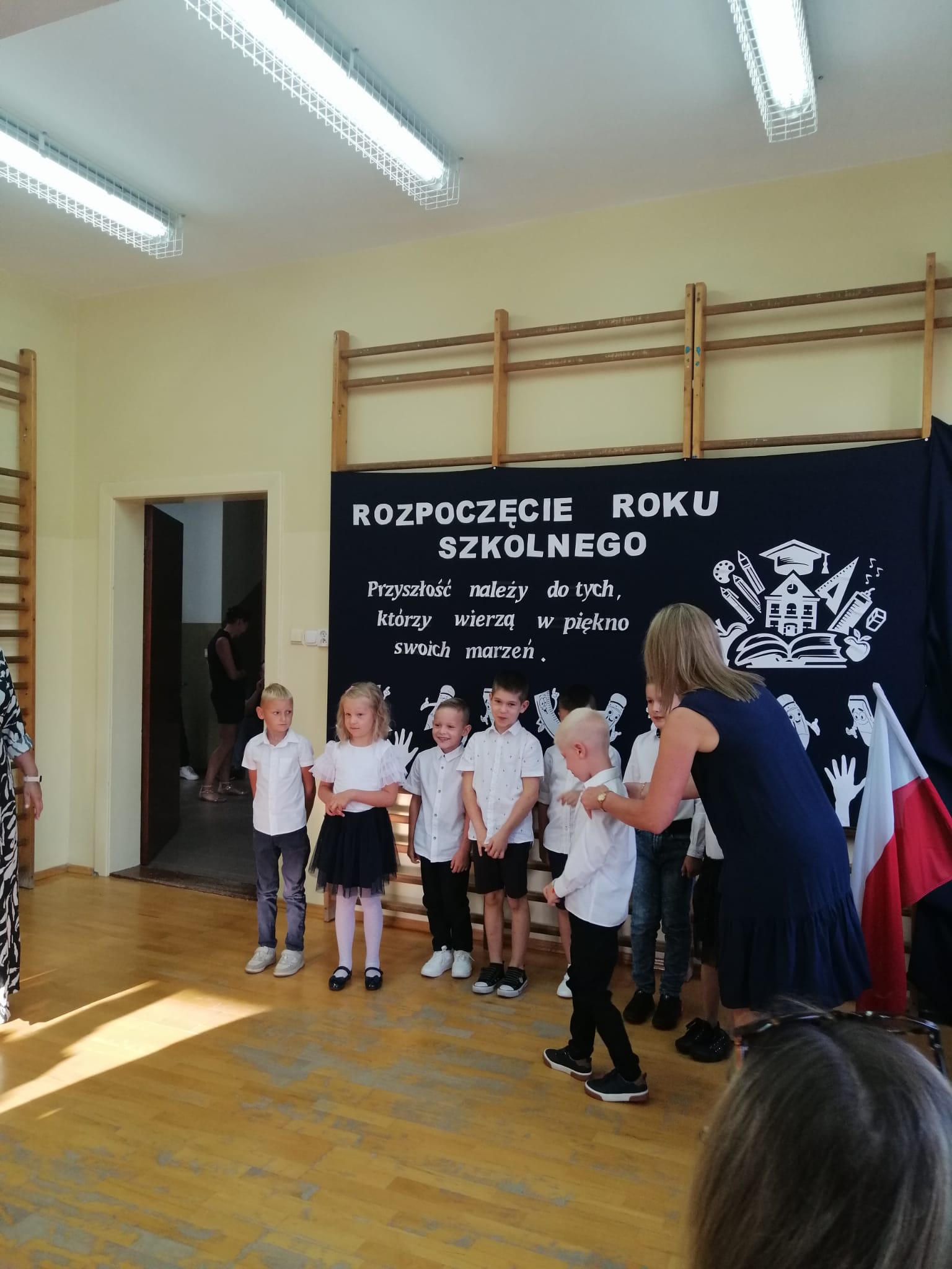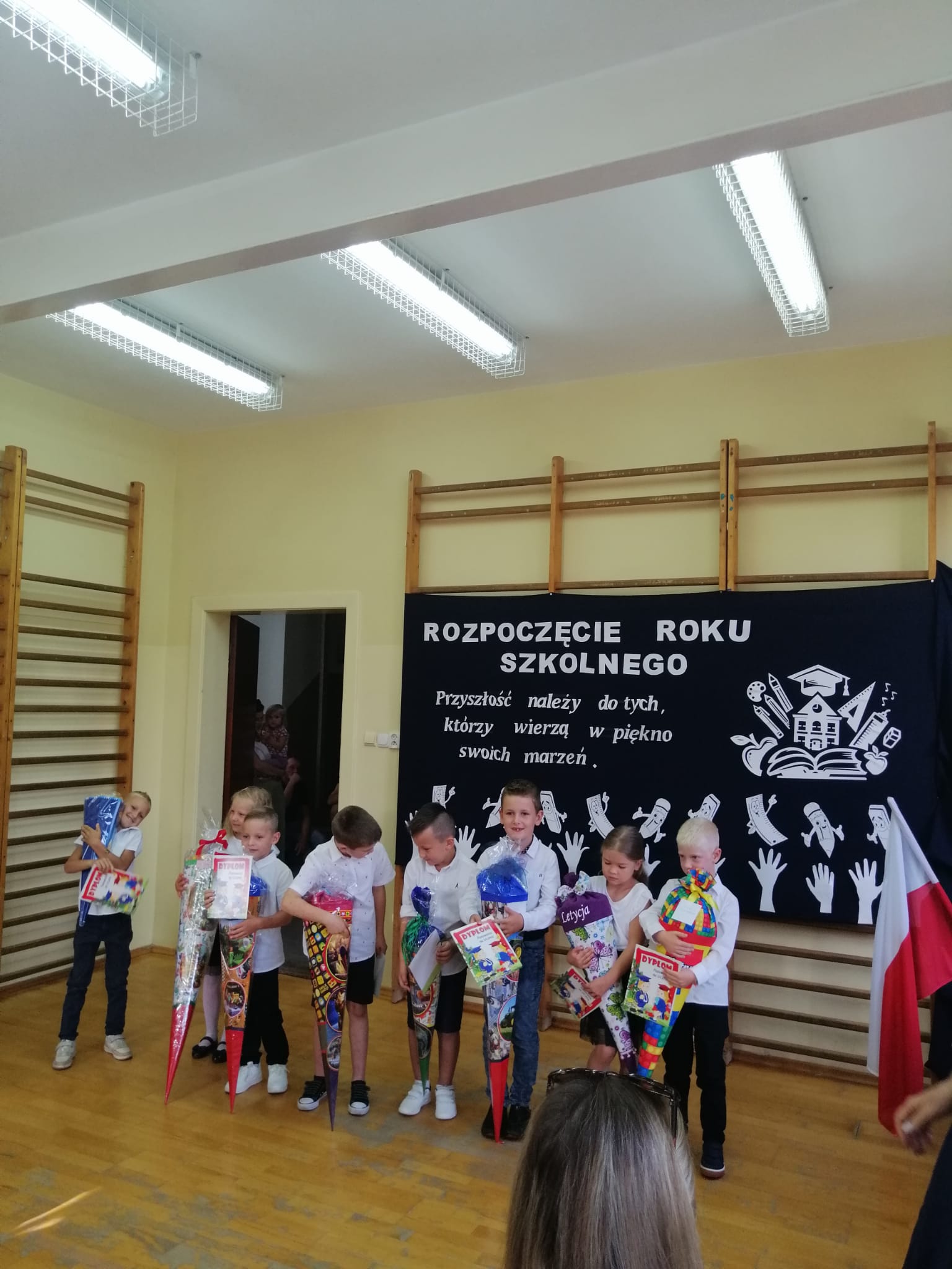 2 września, z radością powitaliśmy nowy rok szkolny 2024/2025! Uroczystość rozpoczęła się  w sali gimnastycznej naszej szkoły, gdzie zgromadzili się uczniowie, nauczyciele oraz rodzice i zaproszeni goście. Pani Dyrektor serdecznie przywitała wszystkich a szczególnie uczniów klasy pierwszej, którzy po raz pierwszy zawitali w murach naszej szkoły.  Uczniowie klasy pierwszej zostali poddani sprawdzianowi gotowości pierwszoklasisty, który zdali znakomicie i zostali  uroczyście pasowani  na uczniów naszej szkoły. Na zakończenie Pani Dyrektor wspomniała  jak ważne jest zaangażowanie w naukę oraz życie szkolnej społeczności.