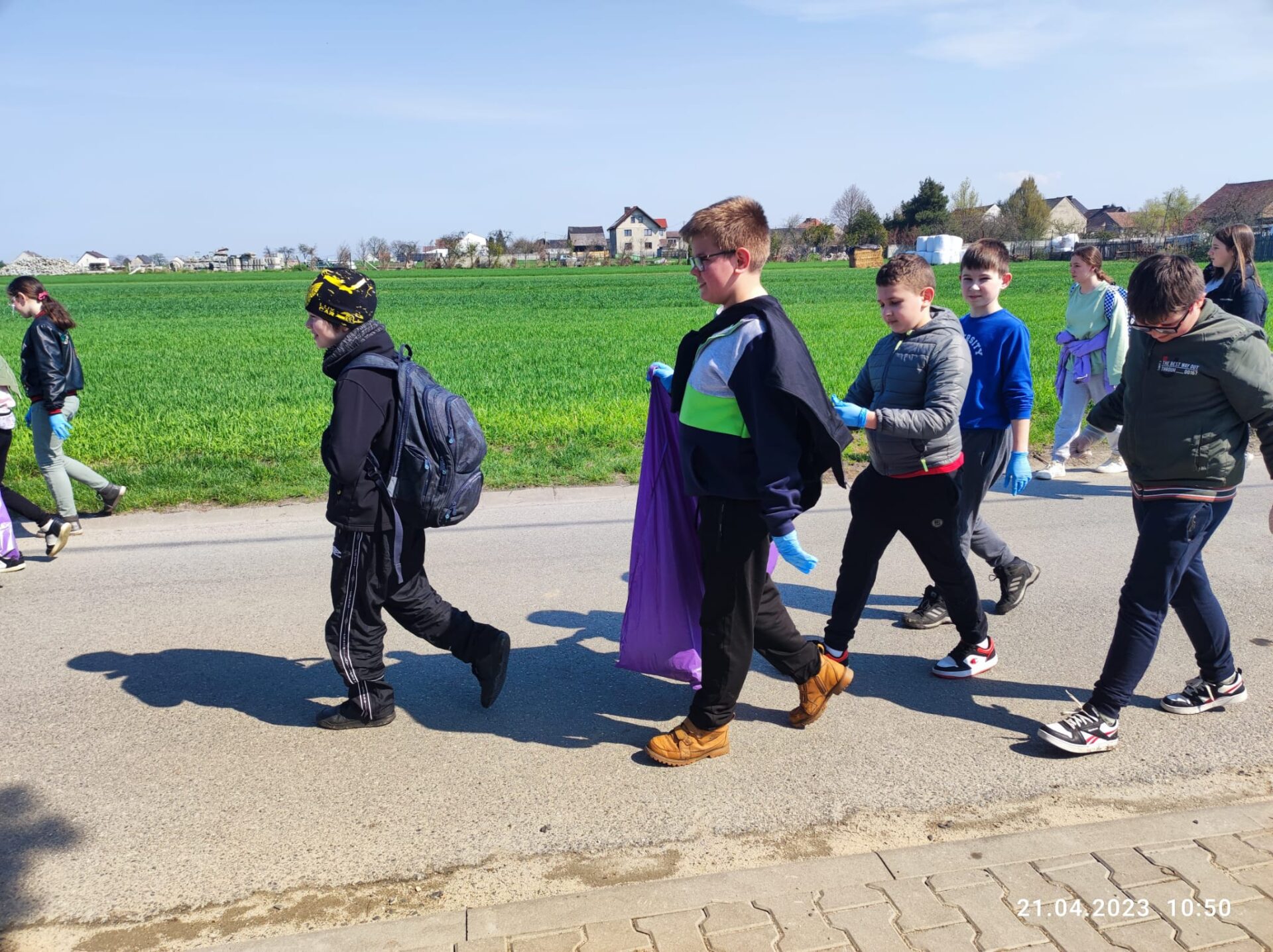 21 kwietnia uczniowie klas I-VIII zaopatrzeni w worki i jednorazowe rękawiczki po raz kolejny uczestniczymy w akcji ekologicznej. Rozpoczęła się ona pogadanką na temat bezpieczeństwa oraz celów głównych akcji. Dzieci z klas młodszych sprzątały teren wokół szkoły, a klasy starsze drogę wzdłuż ul.Wiśniowej i ul .Alei i część lasu. Dzięki pięknej, słonecznej pogodzie akcja przebiegła szybko i sprawnie, a efekty pracy uczniów były zadowalające. Czynny udział w tym przedsięwzięciu dał uczniom do zrozumienia, że należy dbać o swoje środowisko oraz czystość otoczenia. Opiekunowie akcji dziękują wszystkim za zaangażowanie.