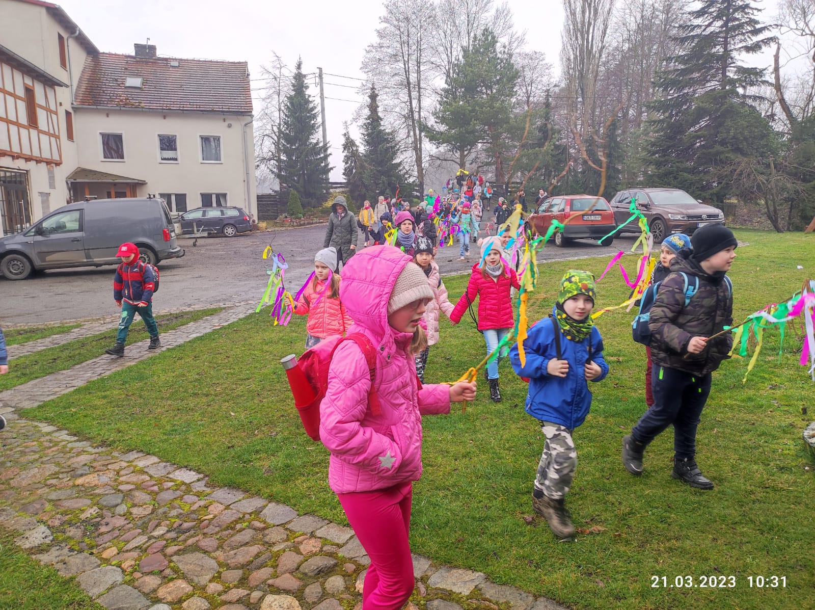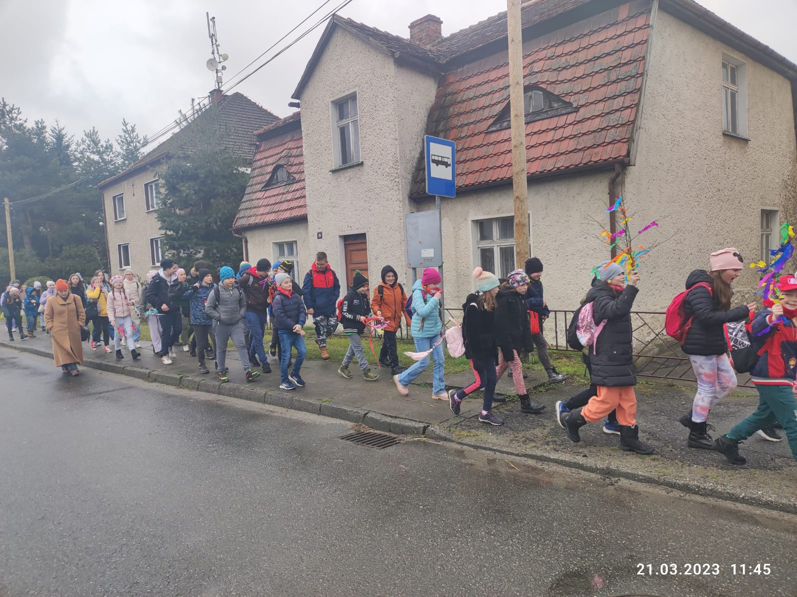 Wiosna to najpiękniejsza pora roku, dlatego Pierwszy Dzień Wiosny jest bardzo radosny i wyczekiwany przez wszystkie dzieci. 21.03.2023 rozpoczęliśmy od przygotowania sukni dla naszej Marzanny. Ubrana w piękną, kolorową sukienkę, ozdobioną kwiatami, Marzanna wraz z dziećmi wyruszyła barwnym korowodem przez Ligotę Prószkowską ze szkoły do Młyna. Zebrani wokół papierowej panny uczniowie donośnymi okrzykami: “Marzanno, Marzano TY zimowa panno, Ciebie pożegnamy, wiosnę powitamy” pożegnały zimę.