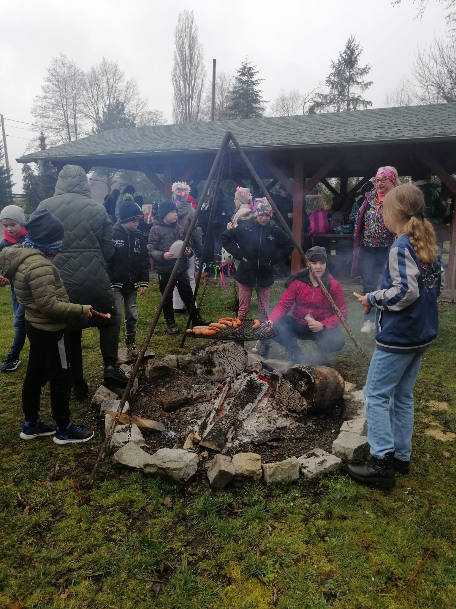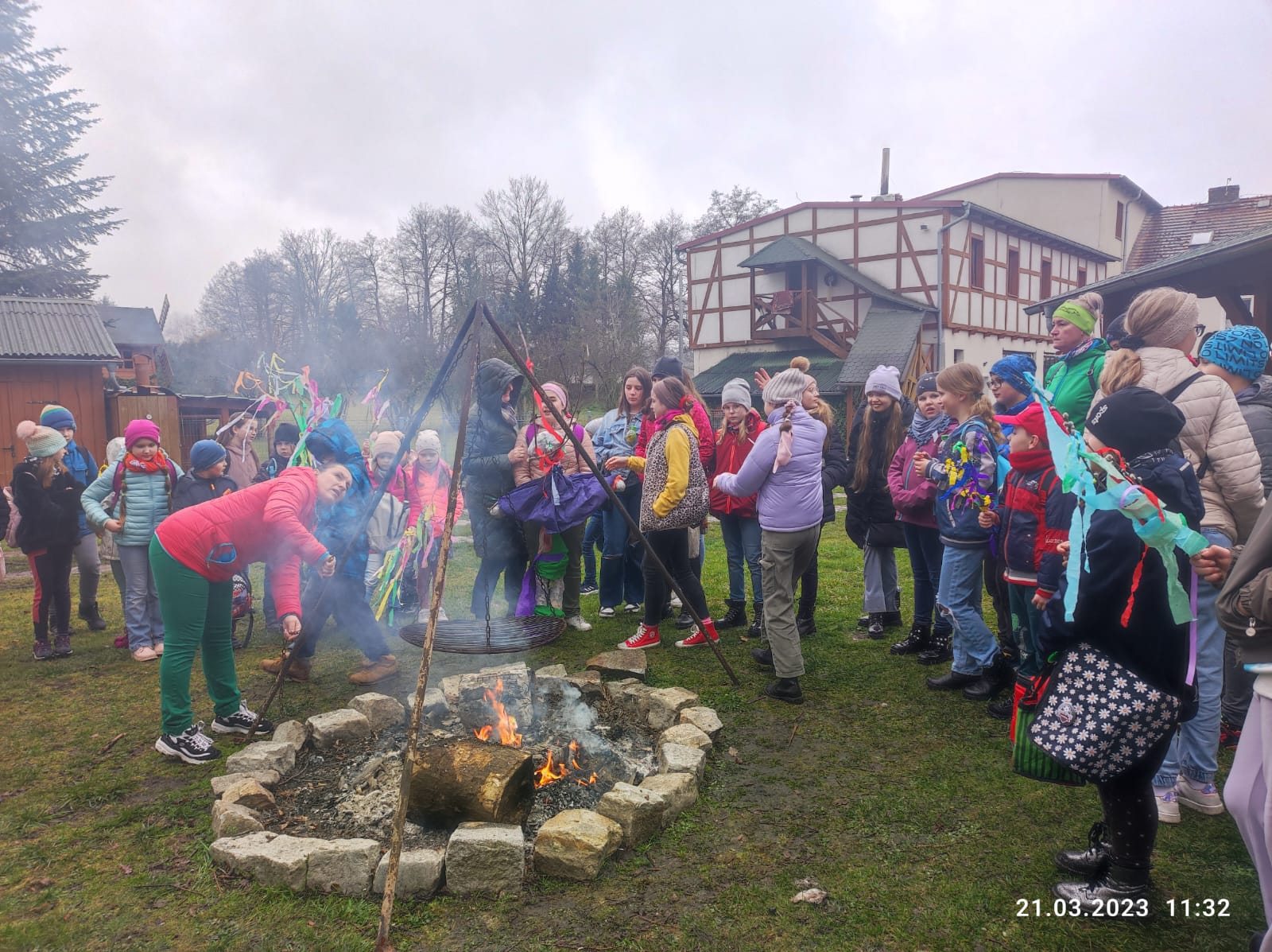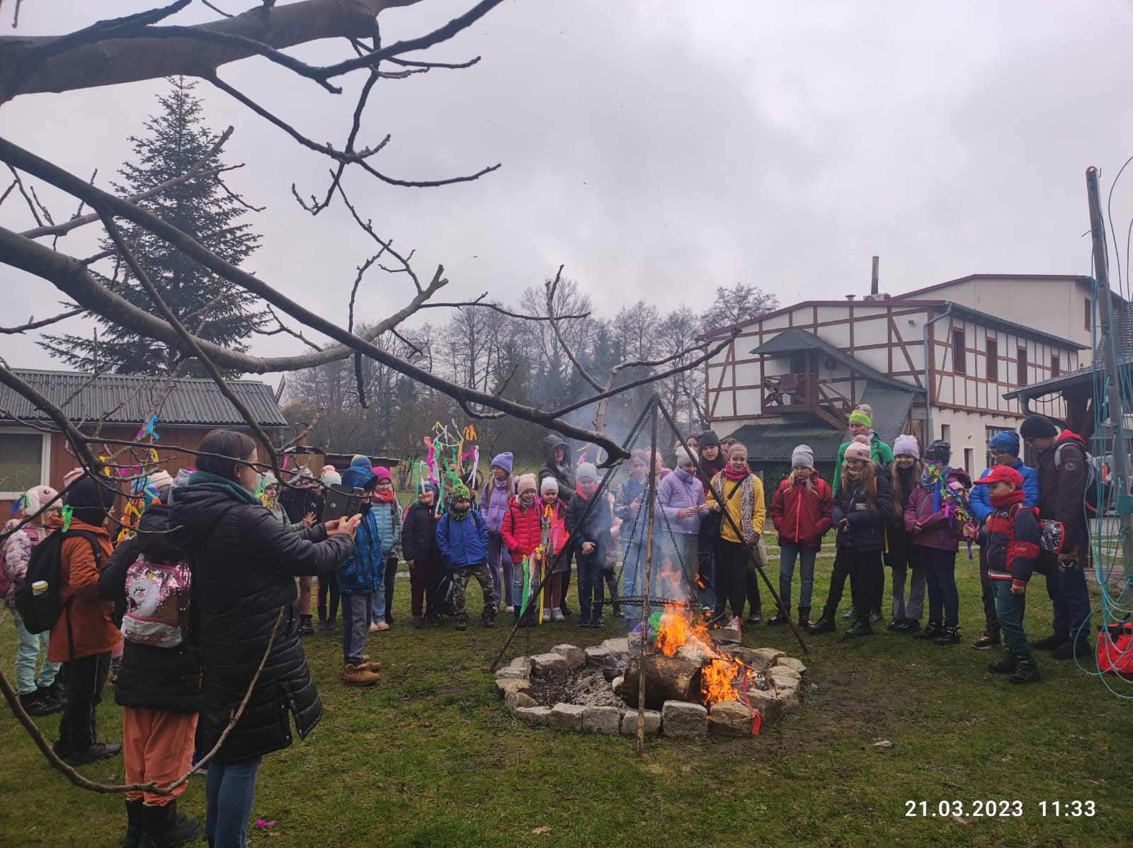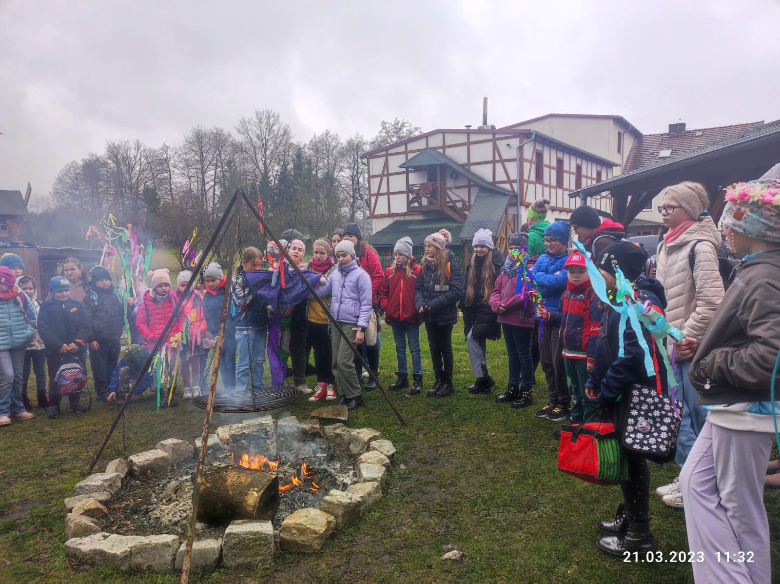 Ze względów ekologicznych, nasza Marzanna, nie została wrzucona do rzeki, lecz spalona na ognisku w gospodarstwie agroturystycznym “Ligocki Młyn”. W tym dniu takze w strojach obowiązywały wiosenne barwy – kolor zielony.