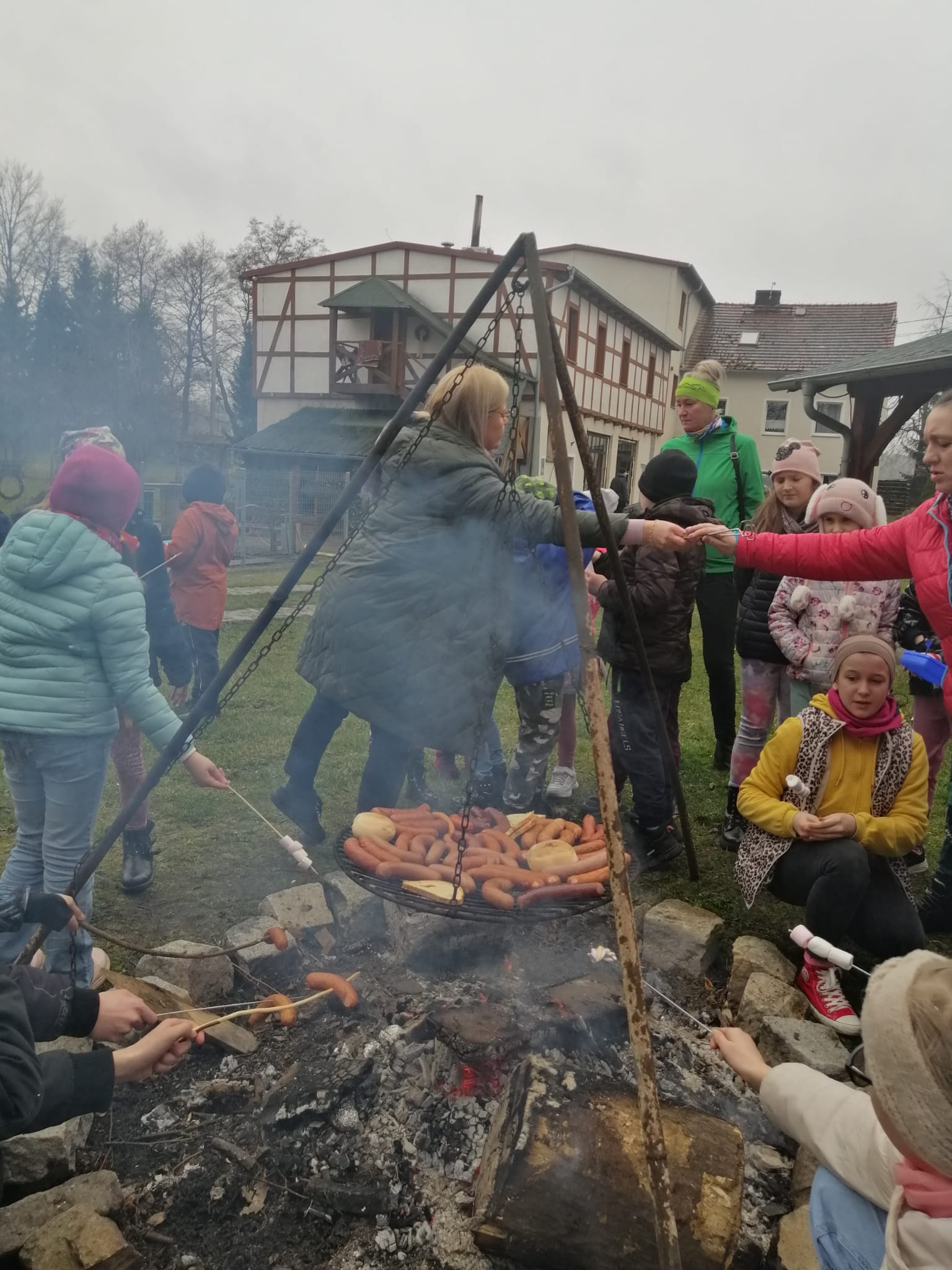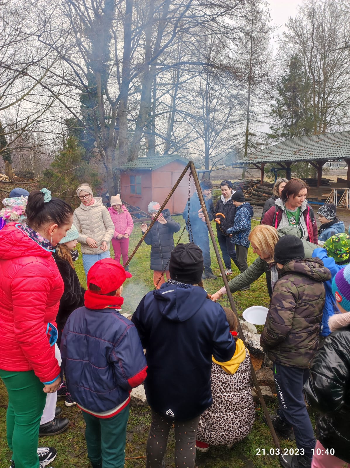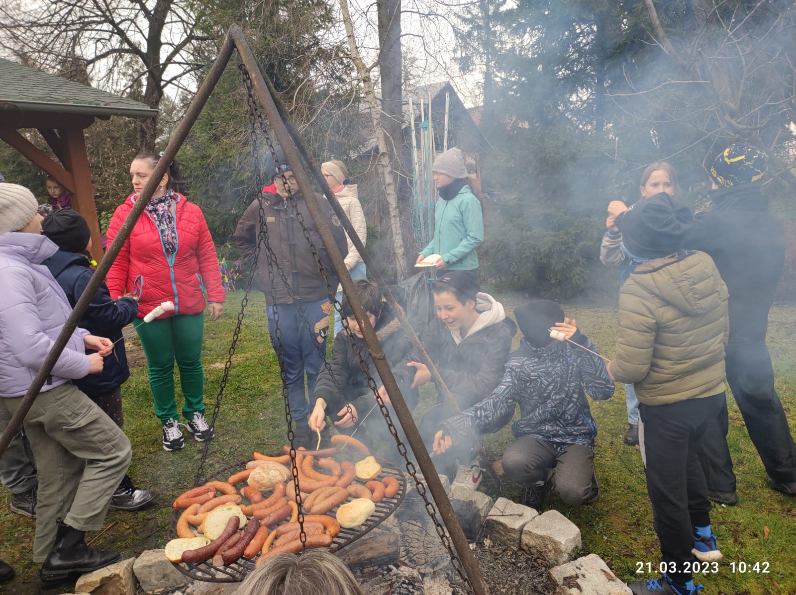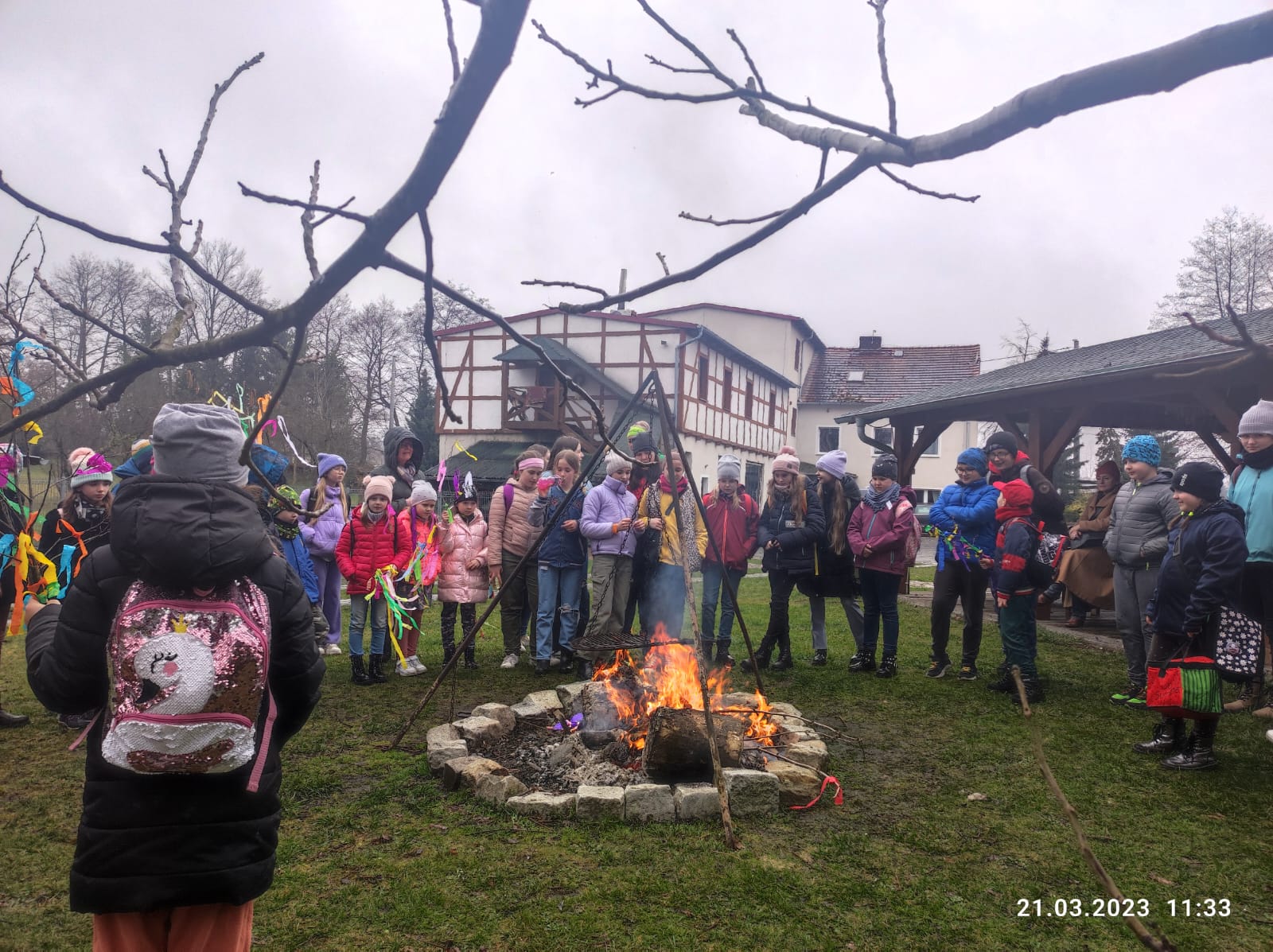 Ze względów ekologicznych, nasza Marzanna, nie została wrzucona do rzeki, lecz spalona na ognisku w gospodarstwie agroturystycznym “Ligocki Młyn”. W tym dniu takze w strojach obowiązywały wiosenne barwy – kolor zielony.